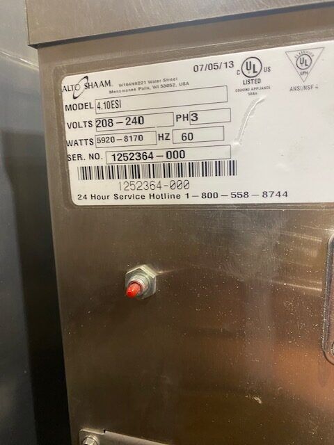 You are viewing a lightly used Alto-Shaam CTX4-10E Commercial combi oven . It is used and works as it should with normal wear and tear. It measures 24-3/8″ W x 37-1/4″ D x 33-1/2″ H. It also includes a stainless steel work stand. It is the EcoSmart Design that uses less electricity, variable steam, convection heat, or oven-fry. Cooking speeds are increased by as much as 70%. What you see in the pictures for this combi oven is included. 208V 22.5 Amps 180 lbs. These sell new for $16,000+. We also sell other new models and have financing options. Our Clearance Warehouse is located in the Foothills Industrial Park #5, 6613 – 44th Street SE, Calgary, AB. Open Monday to Friday 9am to 5pm.