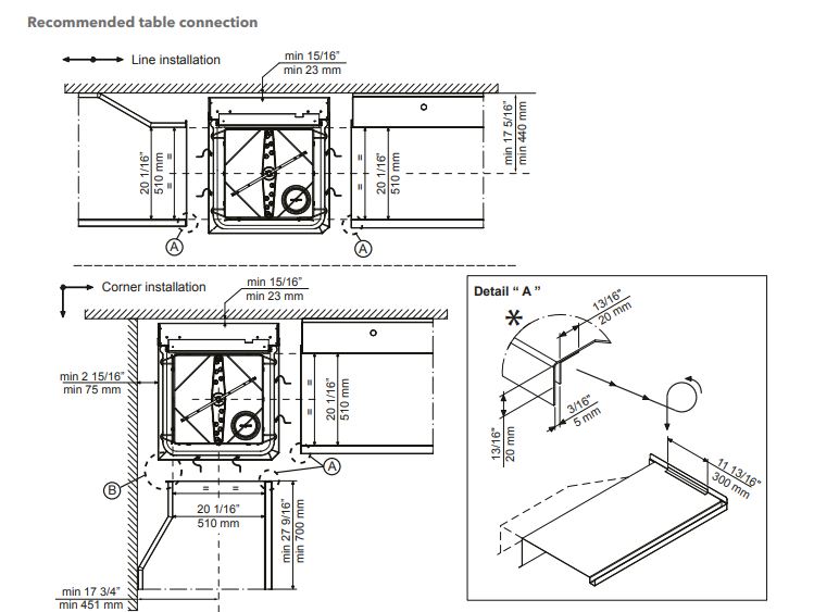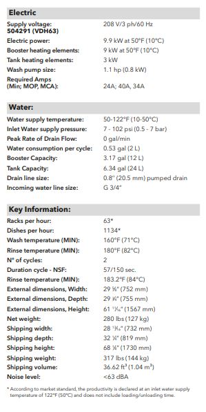 - Included atmospheric booster to raise incoming cold water to a constant temperature of min 187°F (86°C) and pressure throughout the rinsing cycle. No external booster is needed.