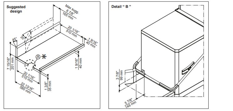 External dimensions, Height: 61 11⁄16” (1567 mm)