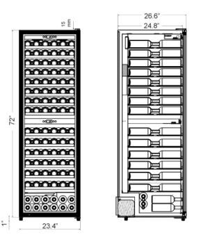 DIMENSIONS:26.6 x 23.4 x 73 in. (675 x 595 x 1854 mm.)