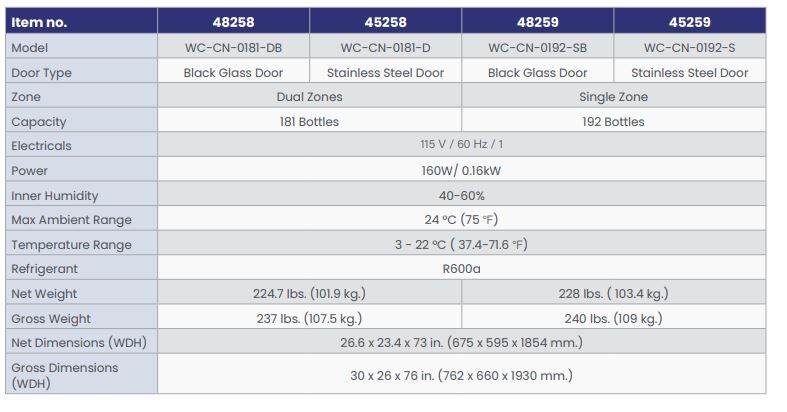 Omcan’s freestanding Dual Zone Wine Cooler is perfect for displaying and merchandising a variety of your finest wines. Ideal for restaurants, bars, and liquor stores, this wine cooler holds a capacity of 181 bottles and the temperature ranges from 3°C – 22°C / 37.4°F – 71.6°F.