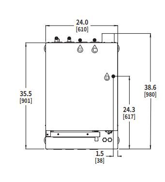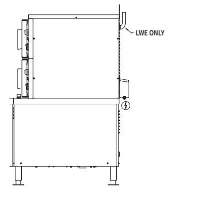 feet. Shipped for 208/60-50/3 electrical service. Can be field converted to 208/60-50/1 and 240/60-50/3 and 240/60-50/1. Split water line connection. Treated and untreated water connections. 1 1 ⁄2″ NPT drain connection.
