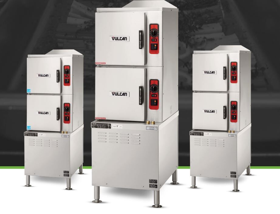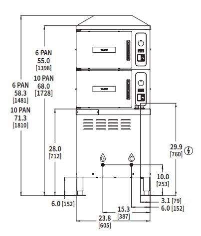 Two stainless steel steam generators with staged water fill and Smart Drain System with PowerFlush. Separate 60-minute timer with constant steam feature and power switch for each compartment. Heavy duty doors and door latch mechanisms. Stainless steel water resistant cabinet base with stainless steel enclosed bottom. 6″ adjustable stainless steel legs with flanged